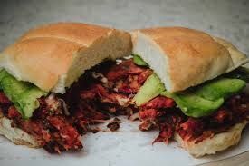 Deliciosa torta de bistec con longaniza en bolillo estándar.