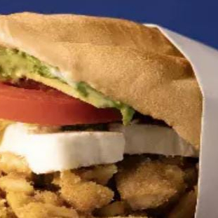 Pan de Telera con Milanesa de Pollo, preparada con crema, aguacate y jitomate. Picante a elegir entre Salsa Verde, rajas y chiles manzanos