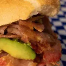 Pan de telera con Salchicha Frita, preparada con crema, jitomate y aguacate. Picante a elegir entre salsa verde, rajas y chiles manzanos