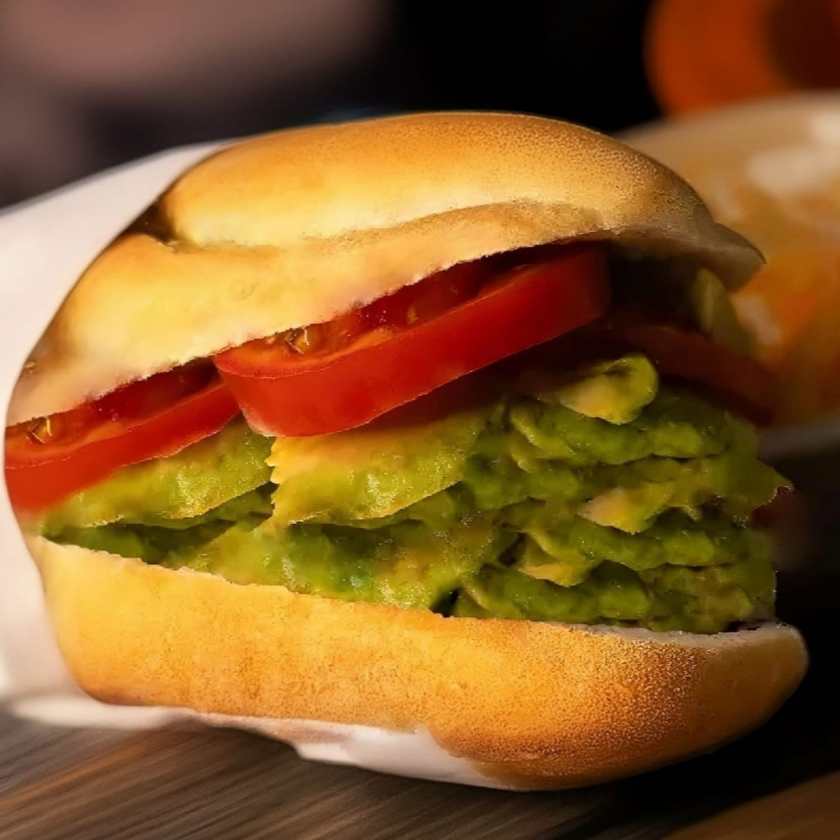 Pan de telera con aguacate, preparada con crema, jitomate y aguacate. Picante a elegir entre chiles manzanos, salsa verde y rajas.