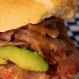 Pan de telera con Pierna Horneada, preparada con crema, jitomate y aguacate. Picante a elegir entre chiles manzanos, rajas y salsa verde.