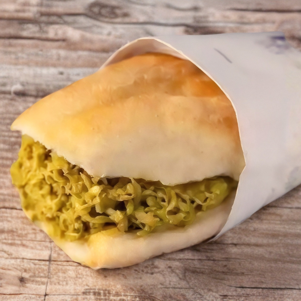 Pan de telera con Salchicha Frita, preparada con crema, jitomate y aguacate. Picante a elegir entre salsa verde, chiles manzanos y rajas.