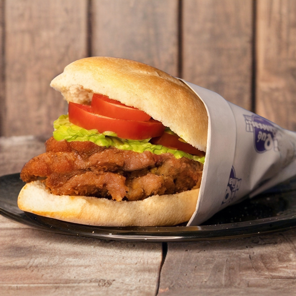 Pan de telera con Milanesa de Cerdo, preparada con crema, jitomate y aguacate. Picante a elegir entre salsa verde, chiles manzanos y rajas.