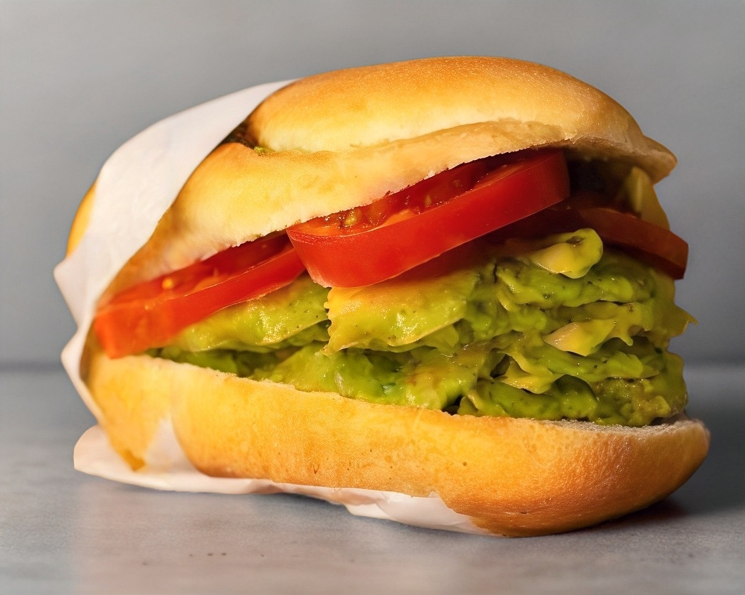 Pan de Telera con aguacate, preparada con crema, jitomate y aguacate. Picante a elegir entre salsa verde, rajas y chiles manzanos.