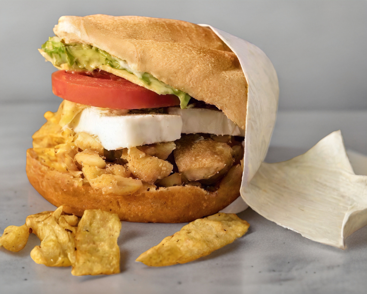Pan de Telera con Milanesa de Pollo, preparada con Crema, jitomate y aguacate. Picante a elegir entre salsa verde, chiles manzanos y rajas.