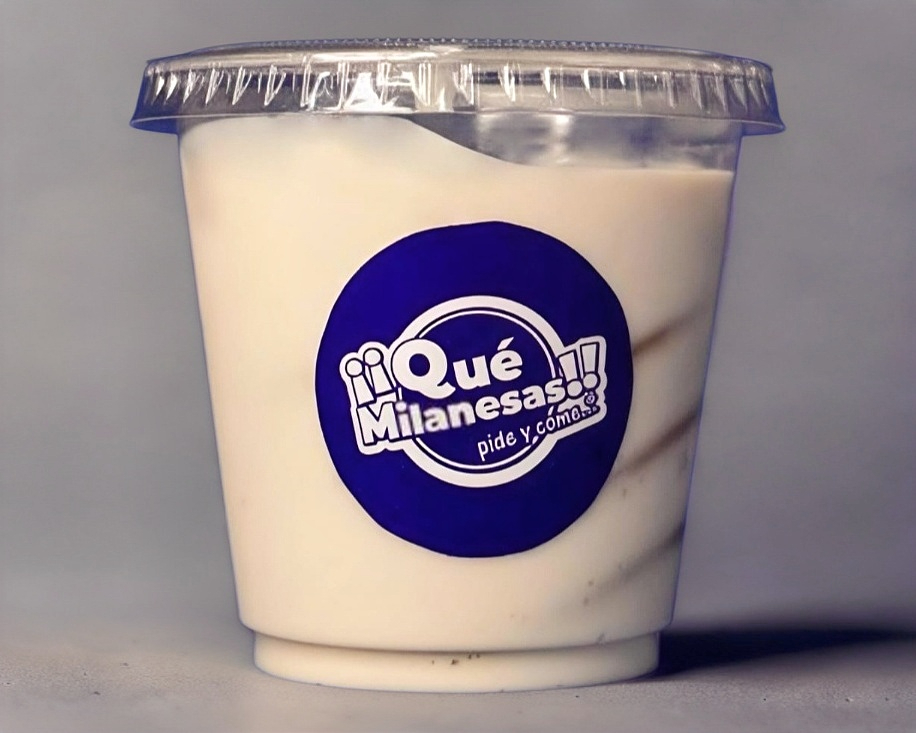 Gelatina de Leche con cuadritos de gelatina de agua de distintos sabores.