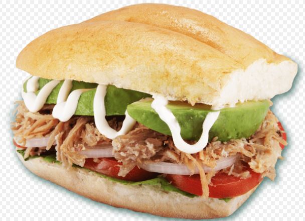 Pierna con queso oaxaca, mayonesa,aguacate,jitomate y lechuga.