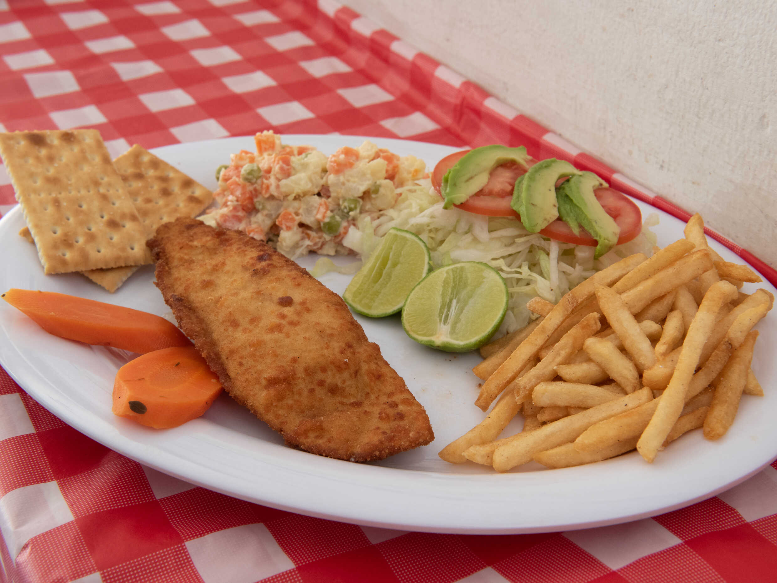 Lechuga, jitomate, aguacate, papas, rusa o arroz