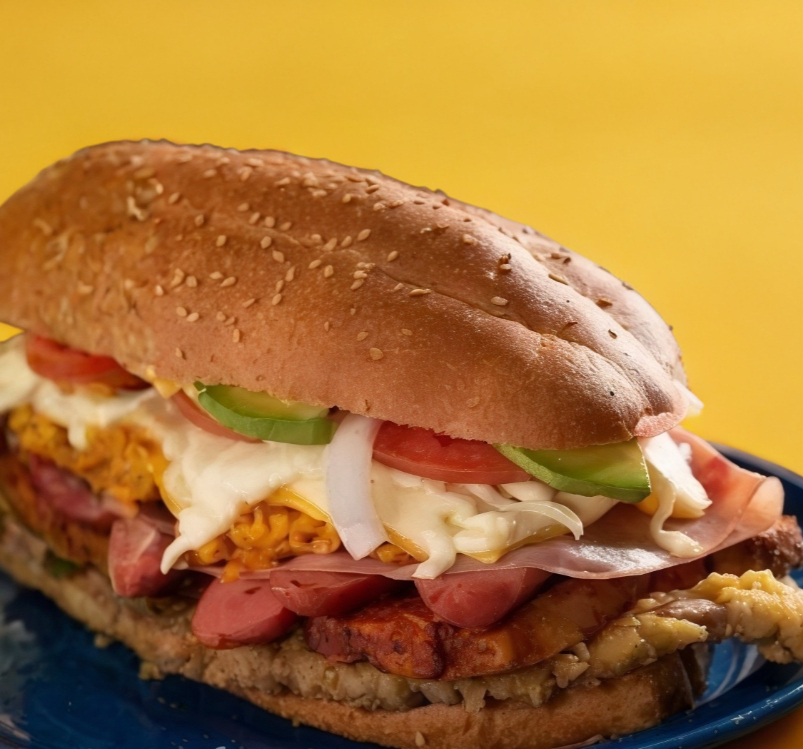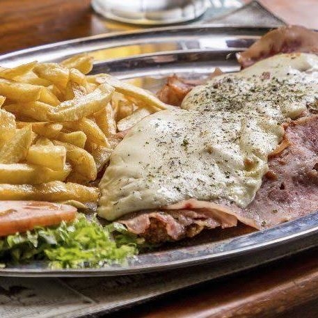 Milanesa, pierna, jamón, salchicha, peperoni, salami, tocineta y queso manchego
