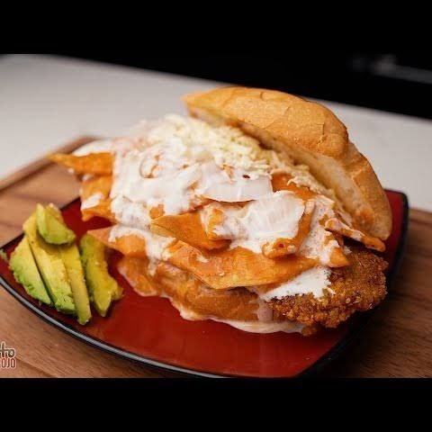 (telera normal) torta de chilaquiles con milanesa, queso y acompañado de coca de 600ml o agua de medio de sabor.