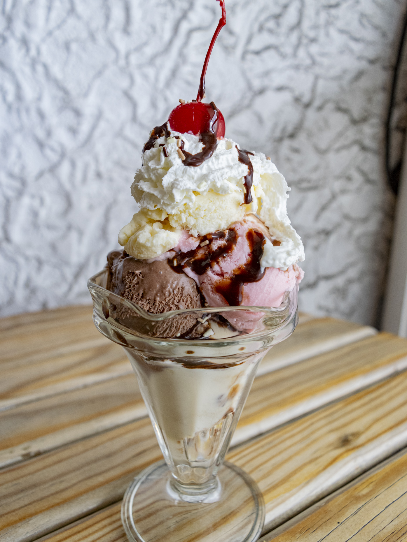 Seductora crema de avellanas con cacao, nuez, ron y helado de chocolate, bañada con Hersheys líquido.