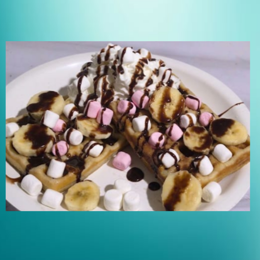 Elige el sabor de tu waffle, acompañalo con los toppings de tu agrado y elige el jarabe que mas te guste.