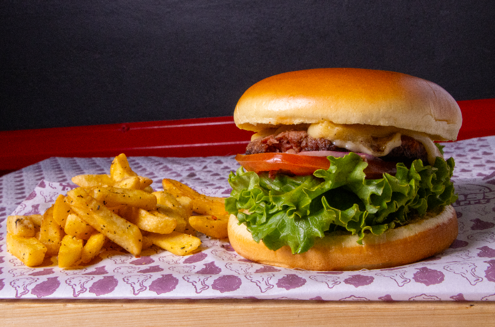 Jugosos 180 g de carne de res selecta con queso, lechuga, jitomate y cebolla en pan suave. La burger clásica que nunca traiciona, perfecta para bajar el monchi, con 220 g de papas a la francesa.
