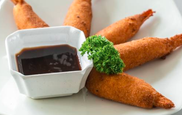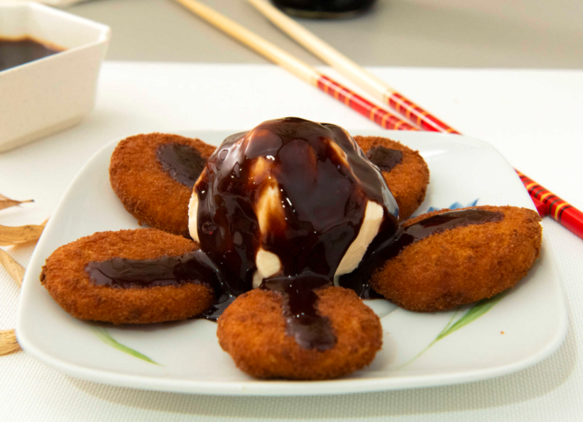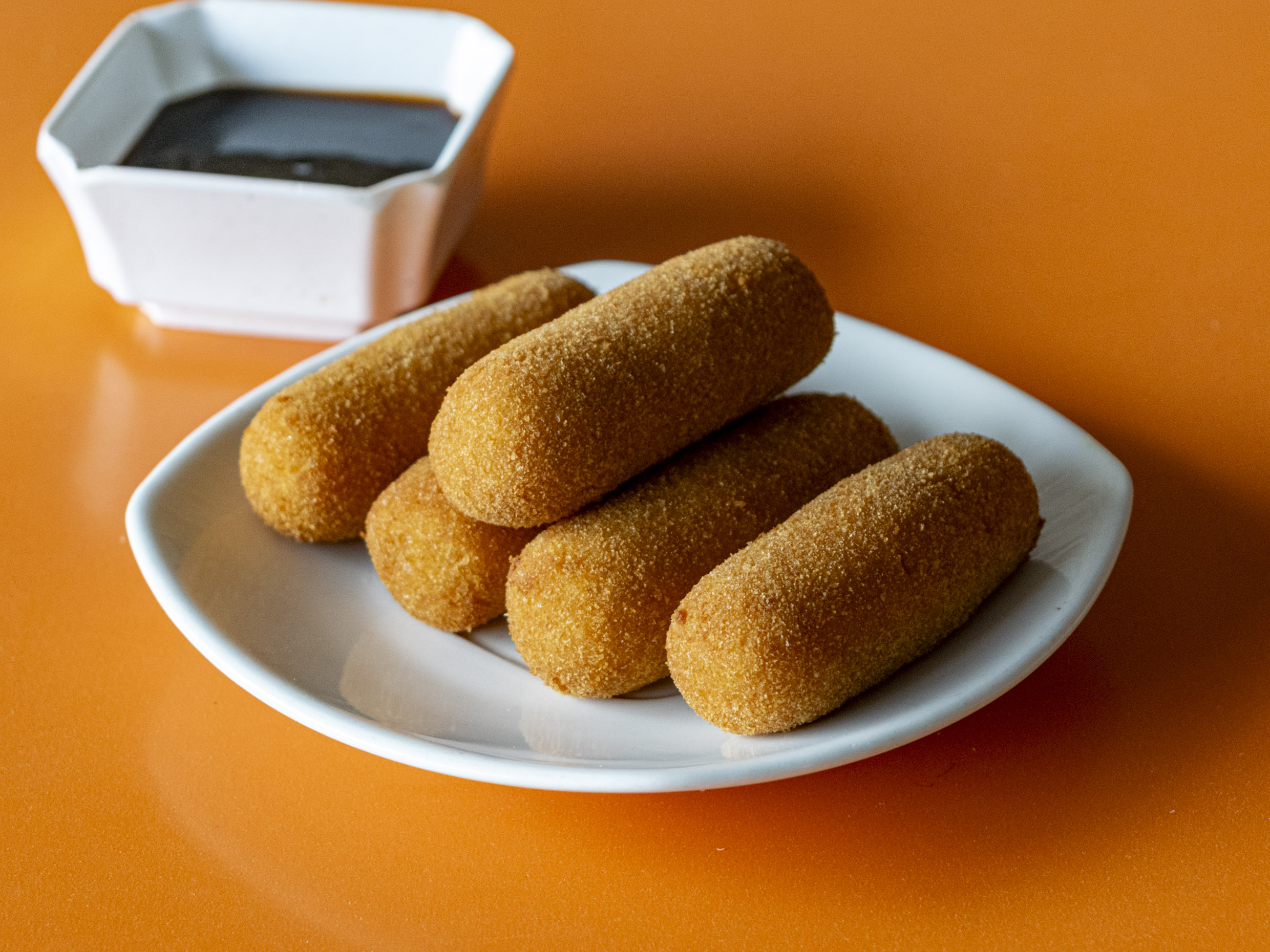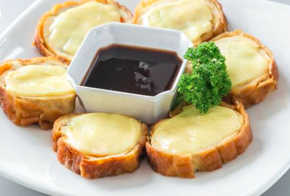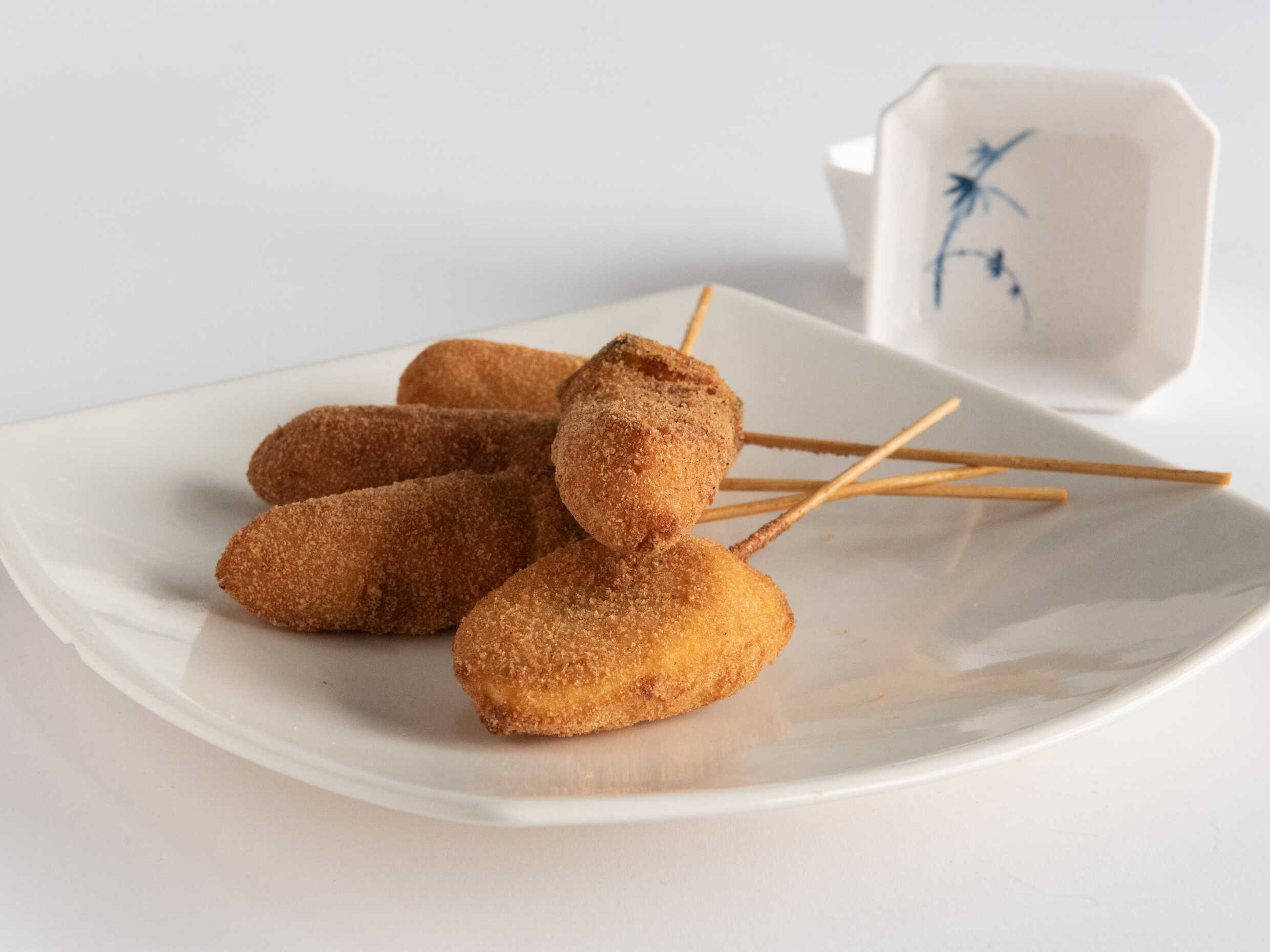 5 Piezas de surimi con queso Philadelphia empanizados.