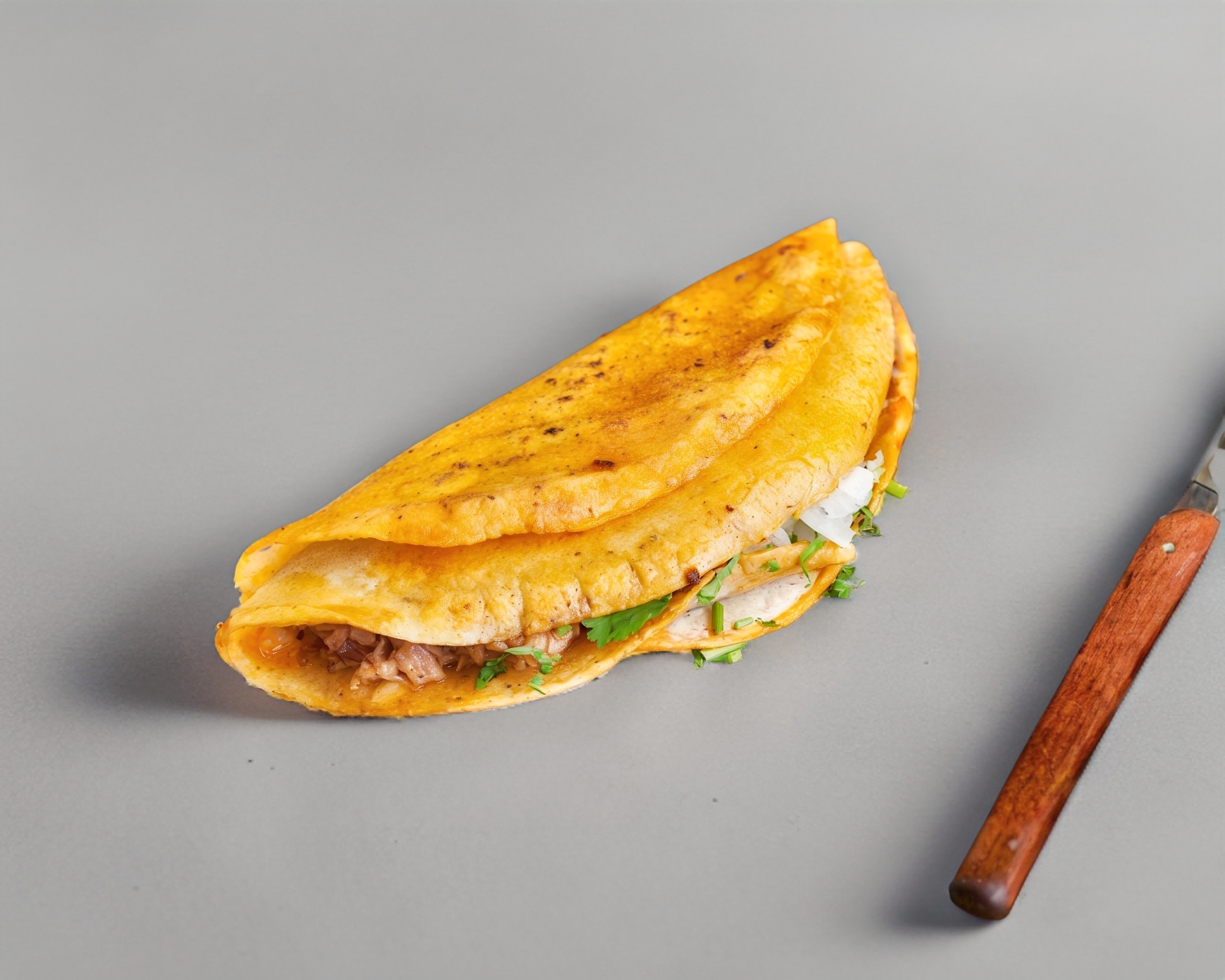 Tradicional taco crujiente de birria, servido en tortilla taquera de maíz, suavemente sofrita a la plancha.
