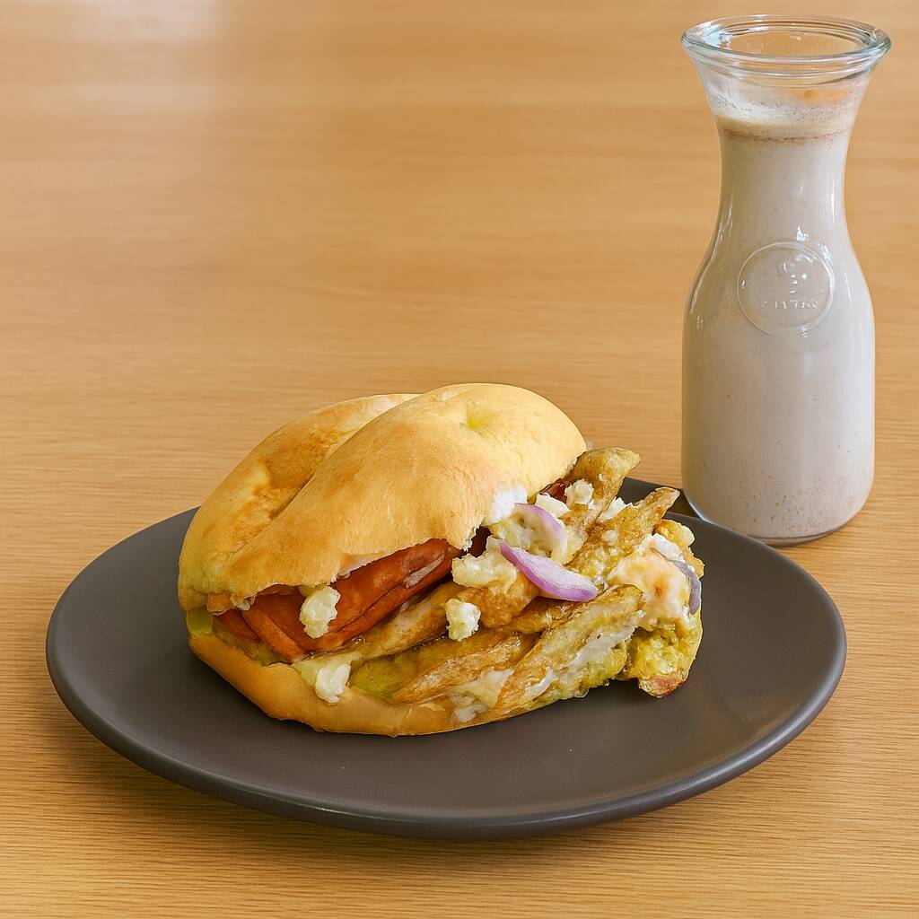 Torta de Salchicha a Base de Seitán*1 + Elige tu Agua Fresca 450ml*1