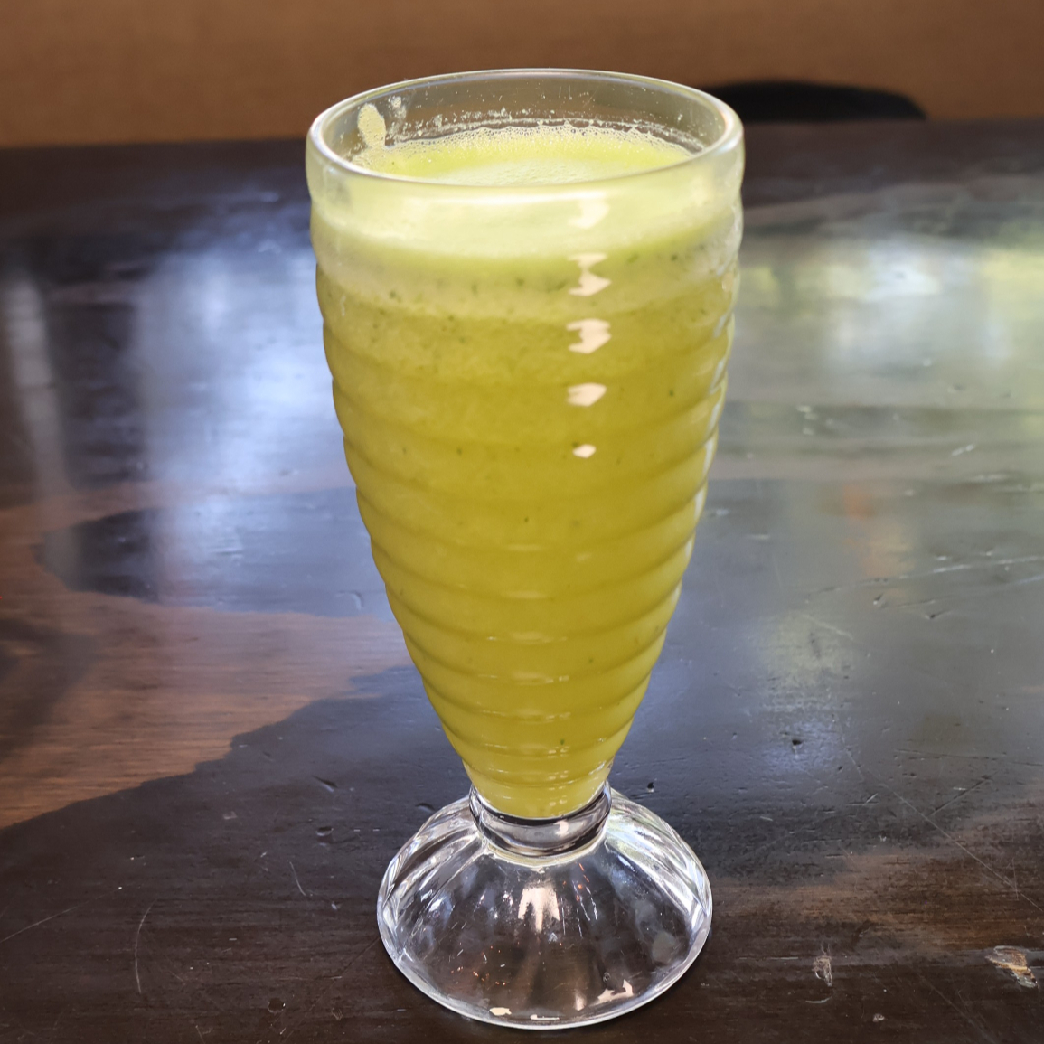 Jugo de nopal, perejil, pepino y jugo de naranja