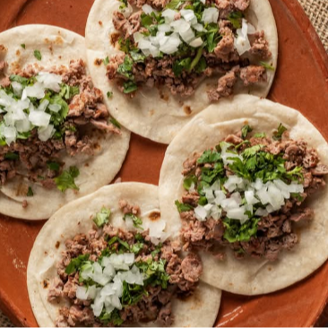 Taco que se rellena con carne de res del corte conocido como sirloin.