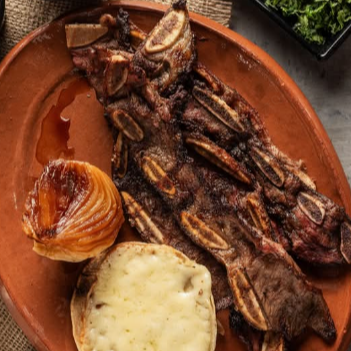 Mezcla de sirloin y picanha con tocino, queso, lechuga, tomate, cebolla asada y piña asada.