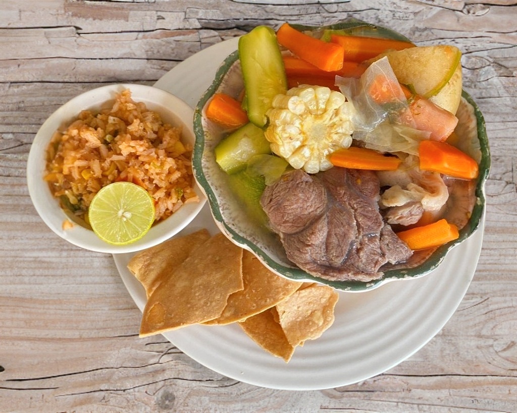Acompanado de arroz o spaguetti,ensalada ,totopos,tortillas y salsa