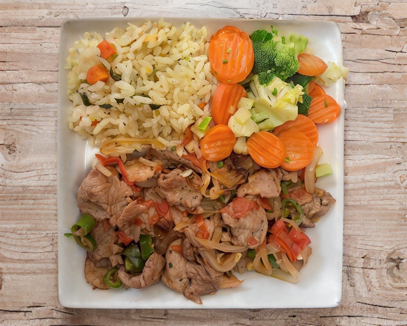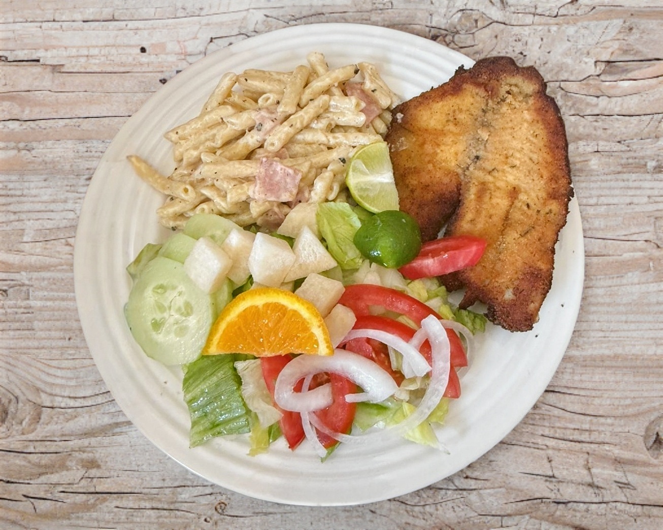 Acompanado de arroz o spaghetti,ensalada,tortilla,totopos y salsa