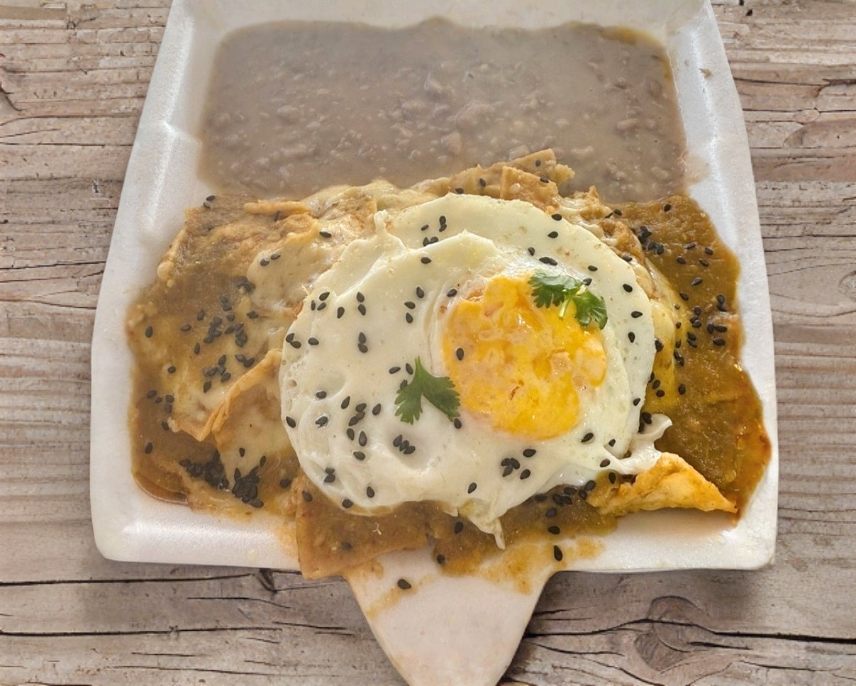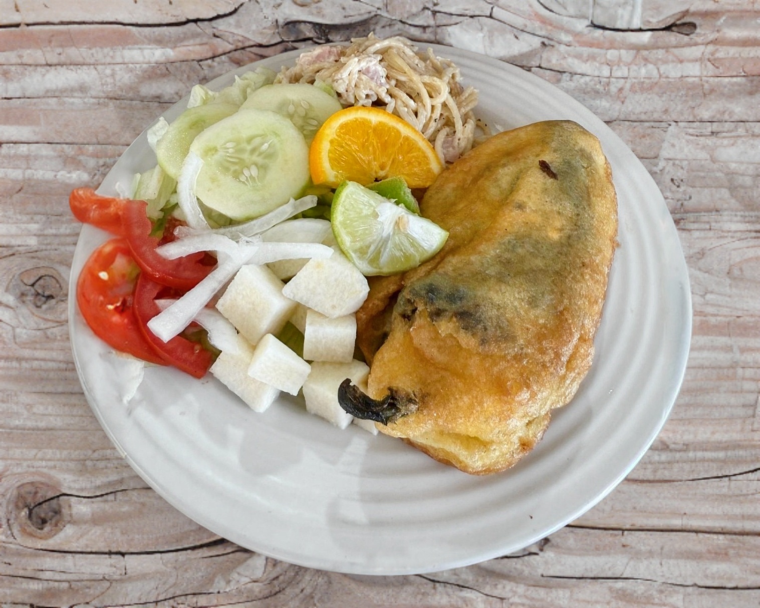 acompanado de tortilla, arroz, salsa, limon y totopos