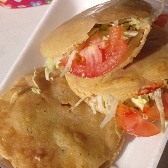Gorditas de maíz fritas, rellenas de tu guiso favorito y lechuga ,jitomate y cueritos