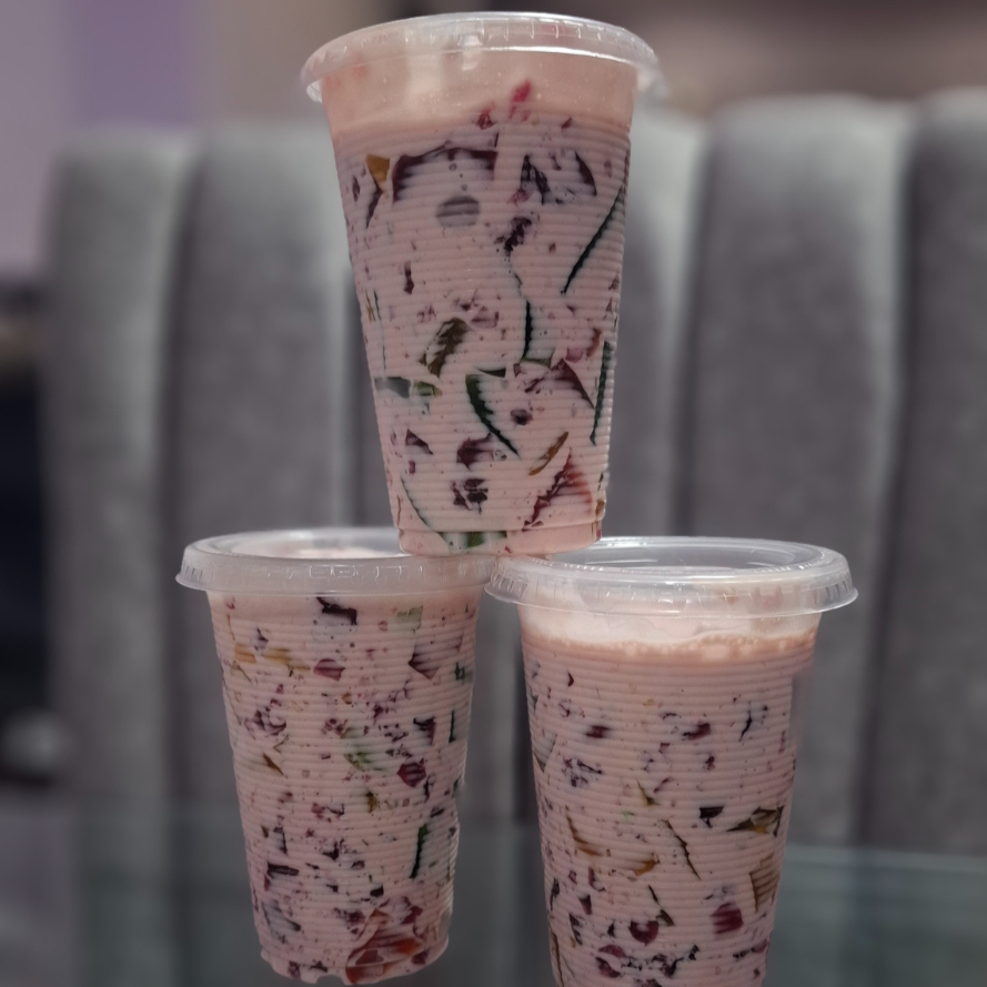 cubitos de gelatina sabor (fresa, limon y piña ) con una base cremosa de leche condensada, evaporada y crema