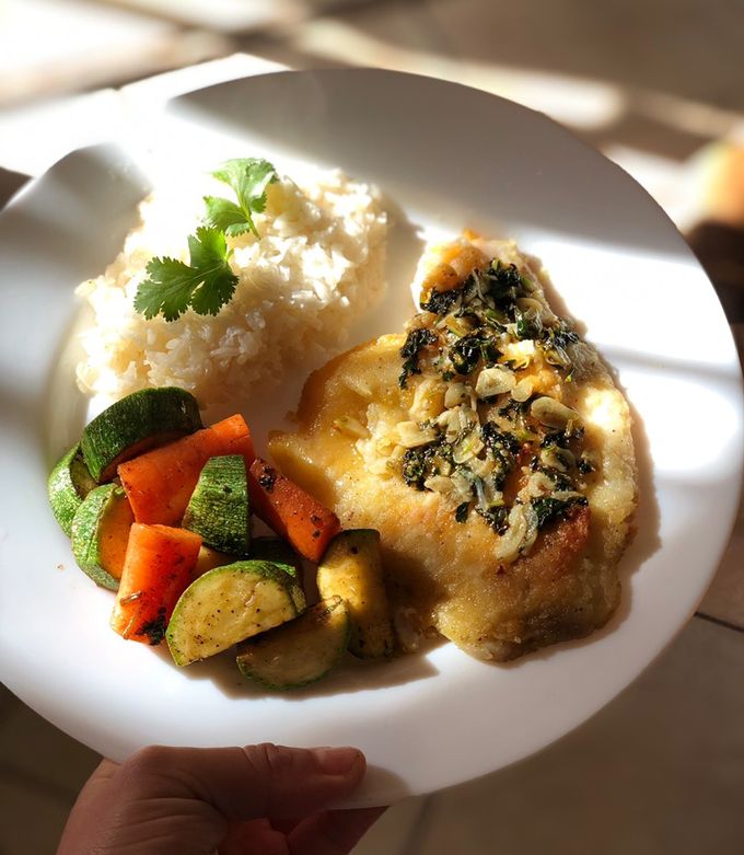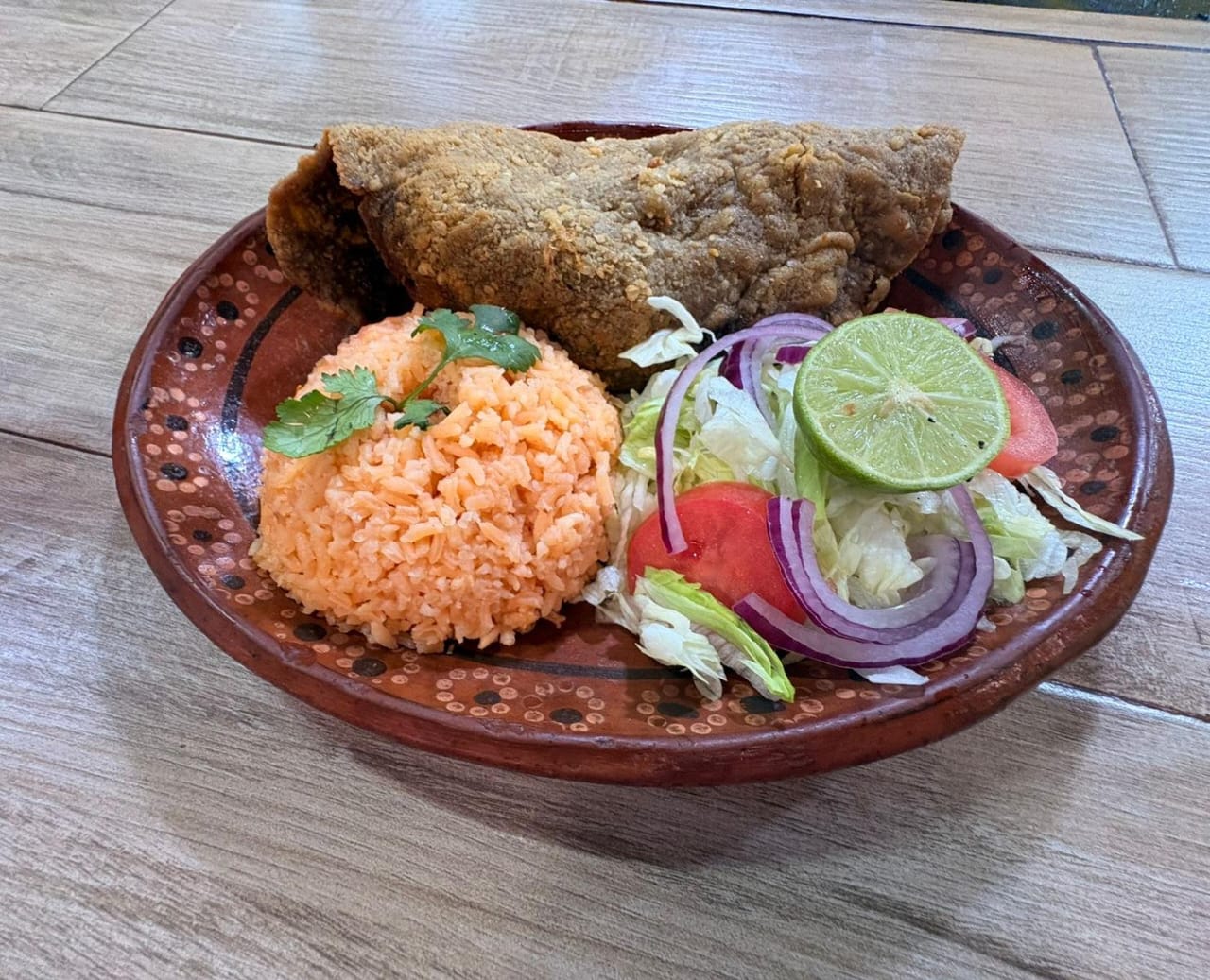Acompañado de arroz blanco y ensalada.