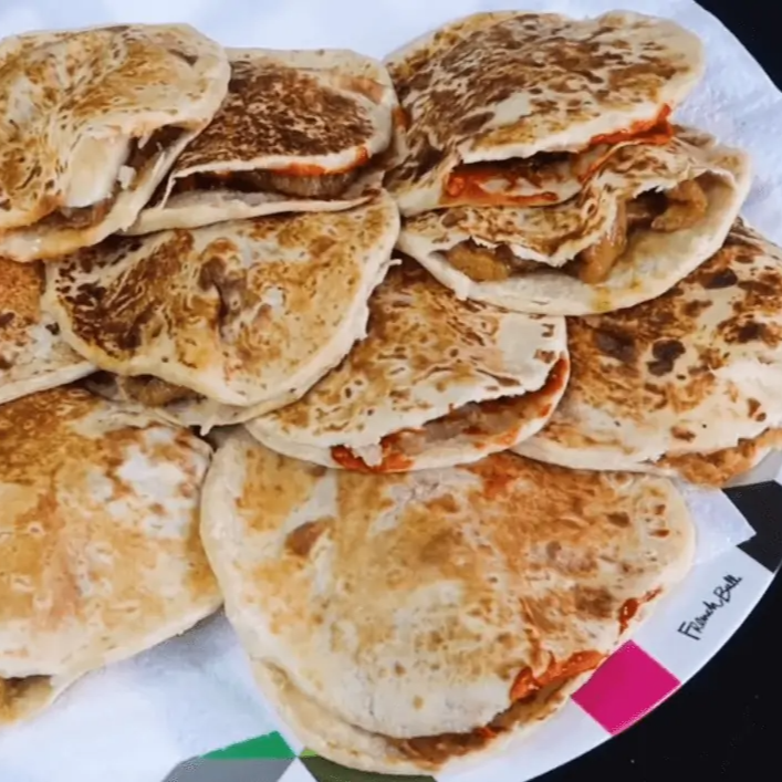 gordita de harina de trigo, rellena de Rajas Con Queso