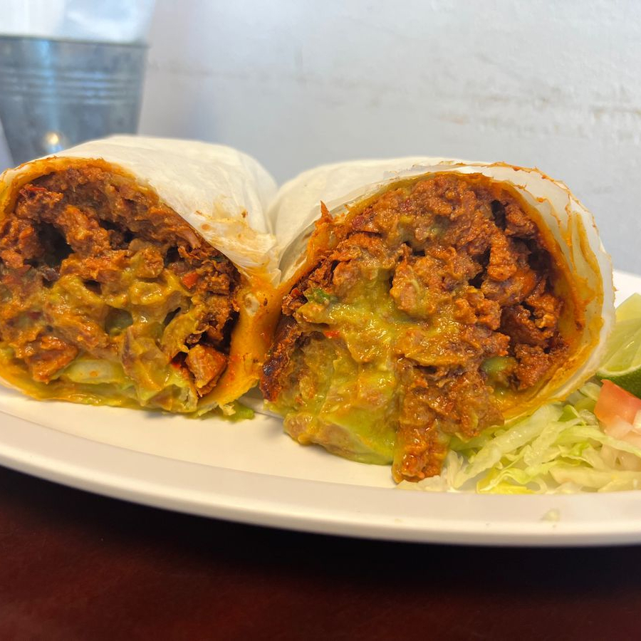 1 tortillon grande, de ADOBADA con FRIJOLES, QUESO, LECHUGA, TOMATE,CEBOLLA, SALSA,