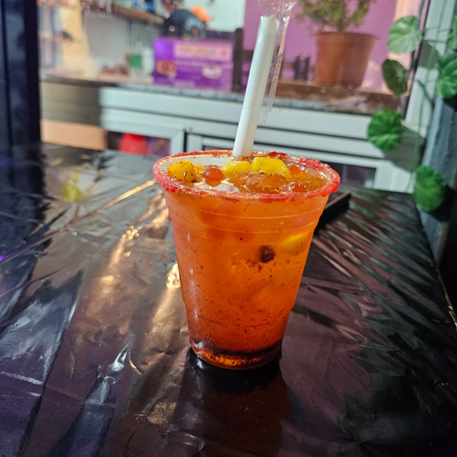 Agua mineral, refresco saborizado, perlas explosivas y fruta en trozos