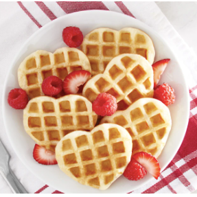 Esponjosos y deliciosos waffles de corazón (6 pzs) sabor vainilla con tus toppings favoritos