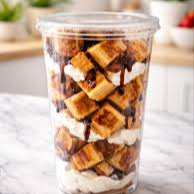 Delicioso y esponjoso waffle completo de vainilla en trozos y con tus toppings favoritos por capas liso para compartir