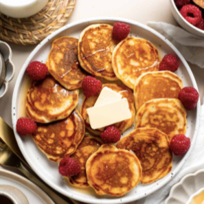 Deliciosos y esponjosos hotcakes (4pzs) sabor vainilla y mantequilla con tus toppings favoritos