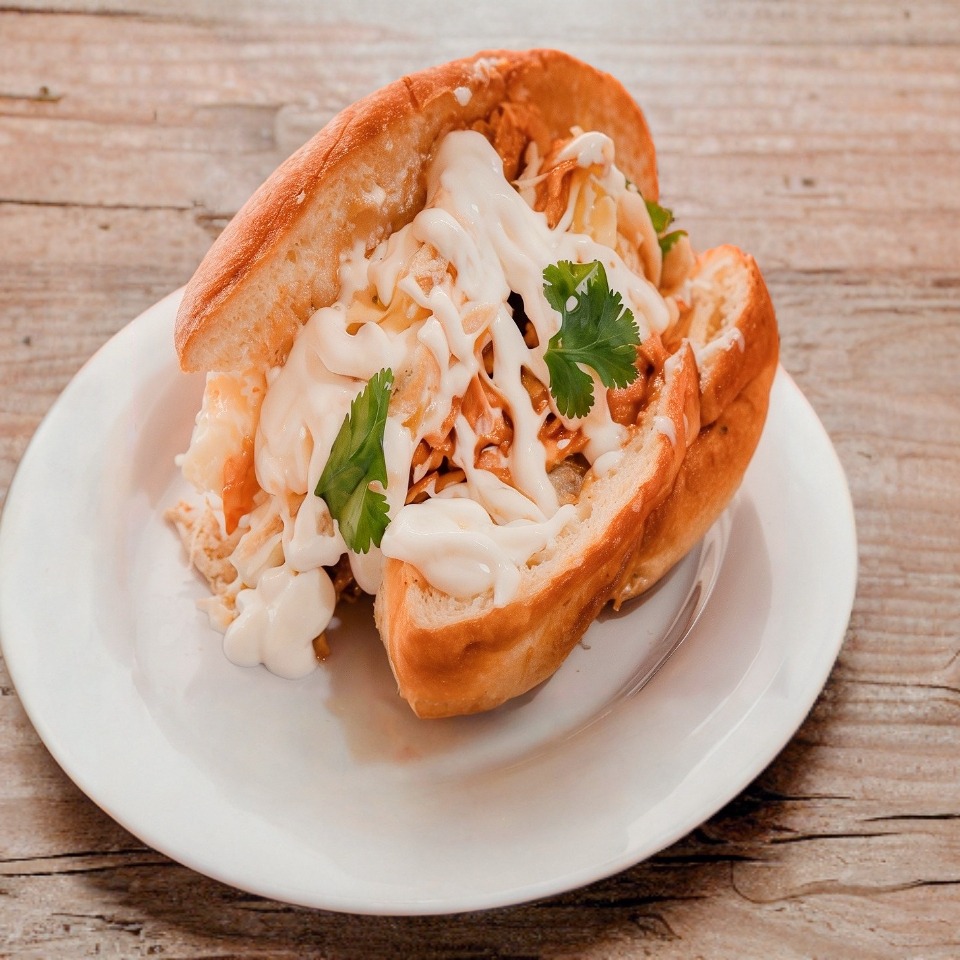Delicioso pan francés relleno de chilaquiles crujientes, pollo tierno y jugoso, queso derretido y un toque cremoso que lo hace irresistible