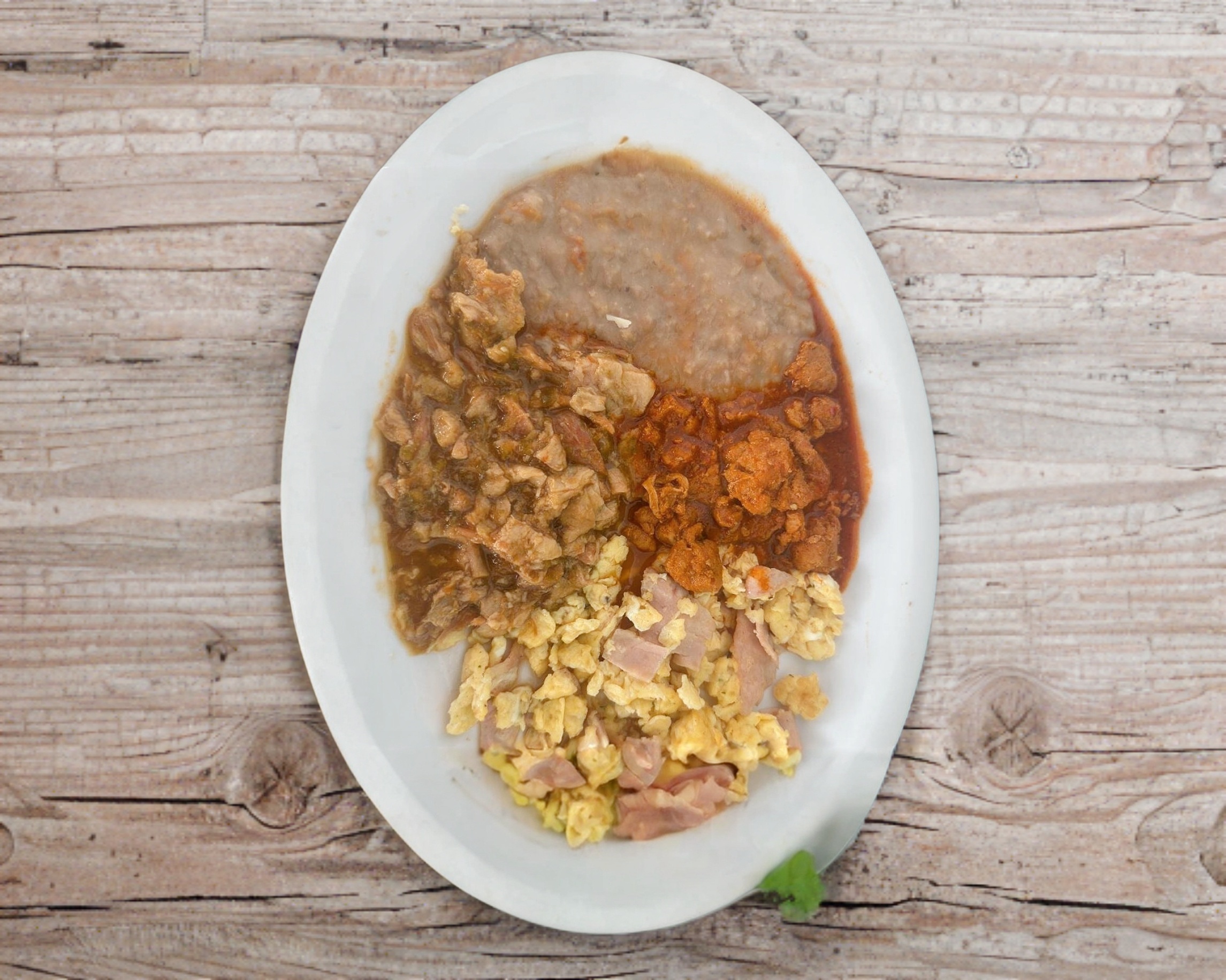 Dos huevos al gusto, acompañados de un guiso a elegir y frijoles refritos caseros, ¡una combinación perfecta para disfrutar de un desayuno lleno de sabor!