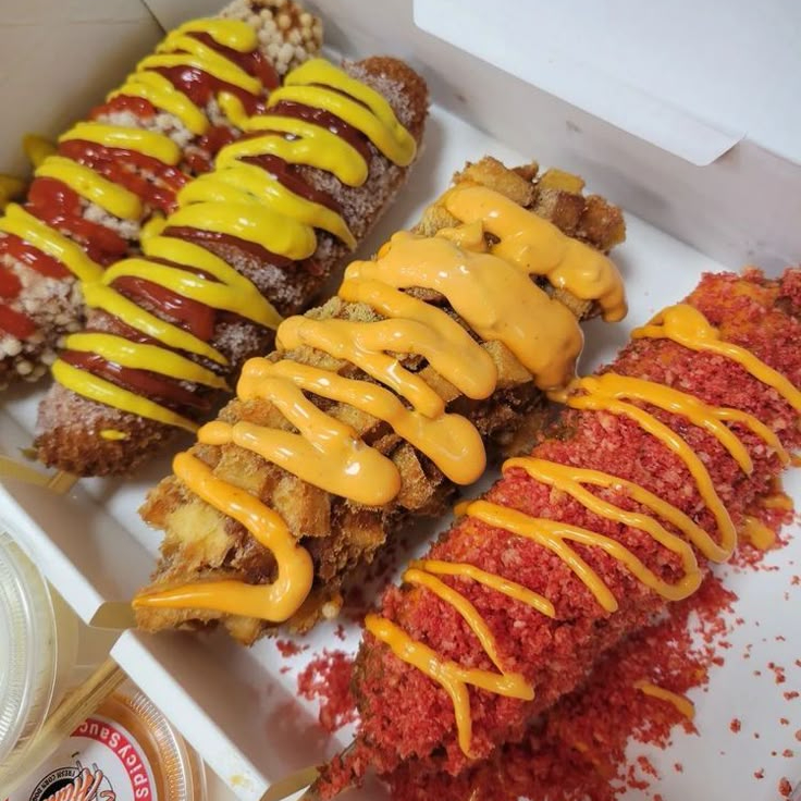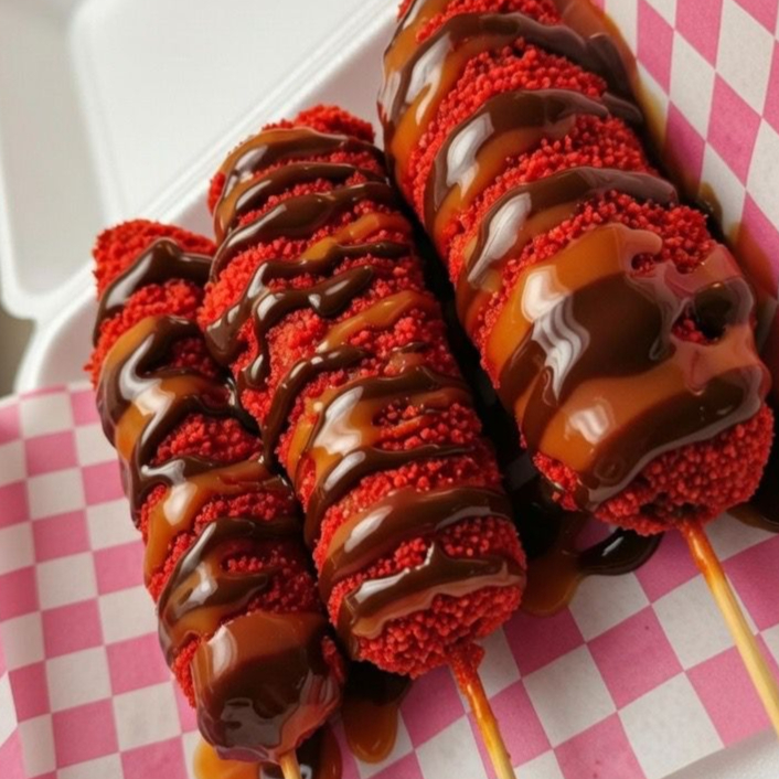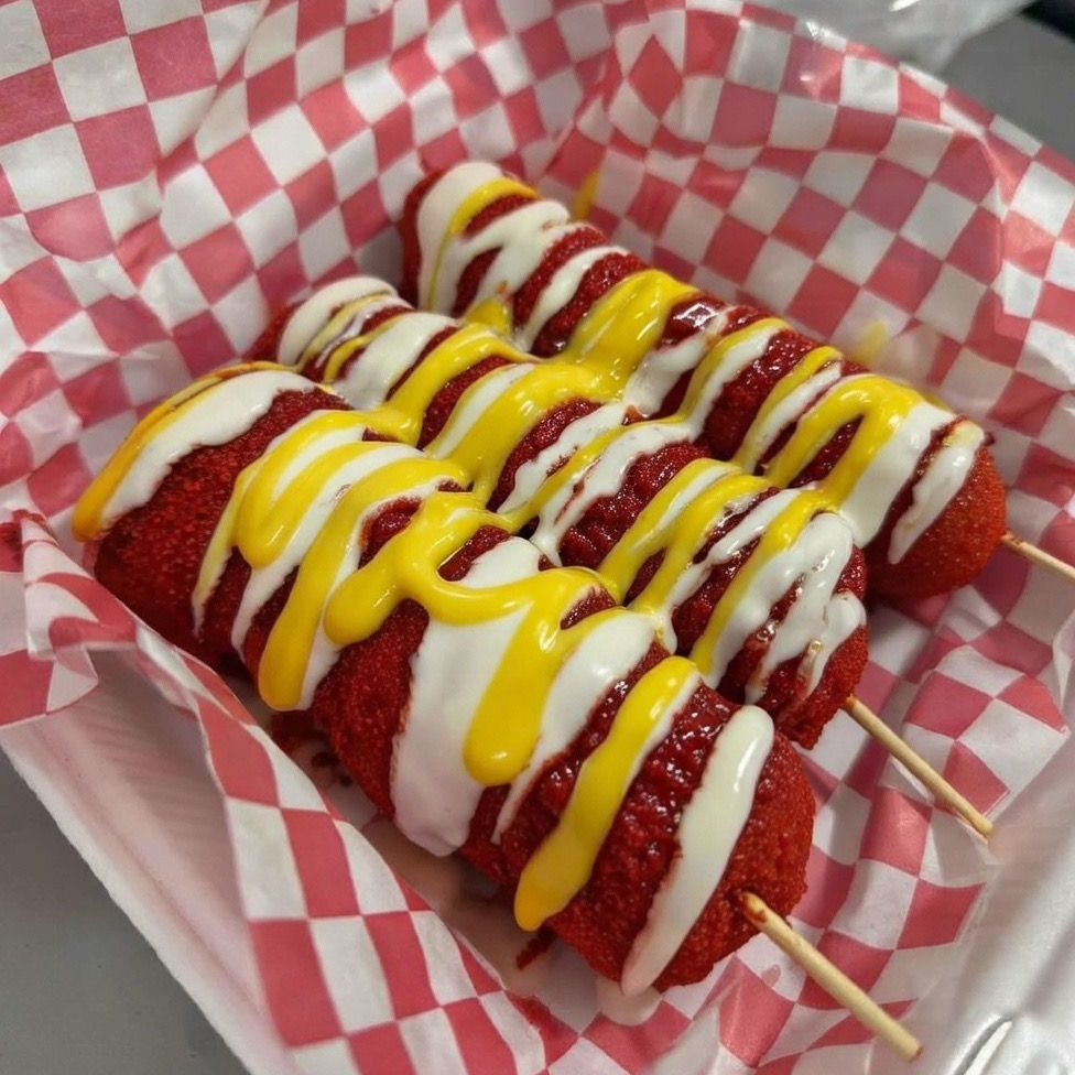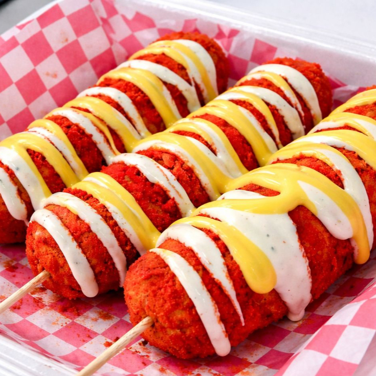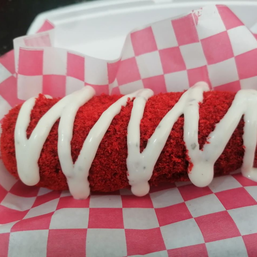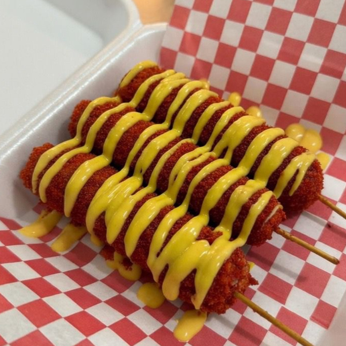 ORDEN INDIVIDUAL BANDERILLA COREANA ENCHILADA CON POLVO ESTILO TAKIS FUEGO. CRUJIENTE POR FUERA SUAVE POR DENTRO. NO INCLUYE ADEREZOS, FAVOR DE ESCOGERLOS A PARTE.