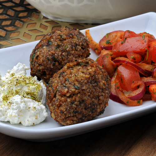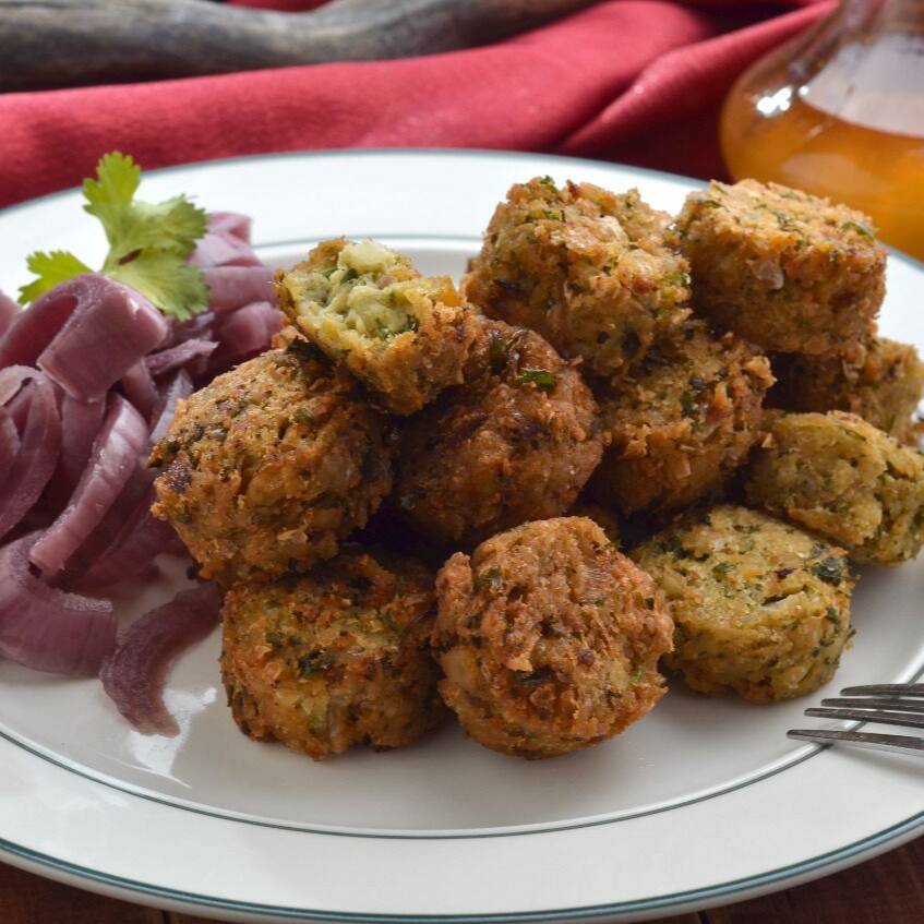 Kippe bola carne molida, sazonada con relleno de piñón y nuez frito.