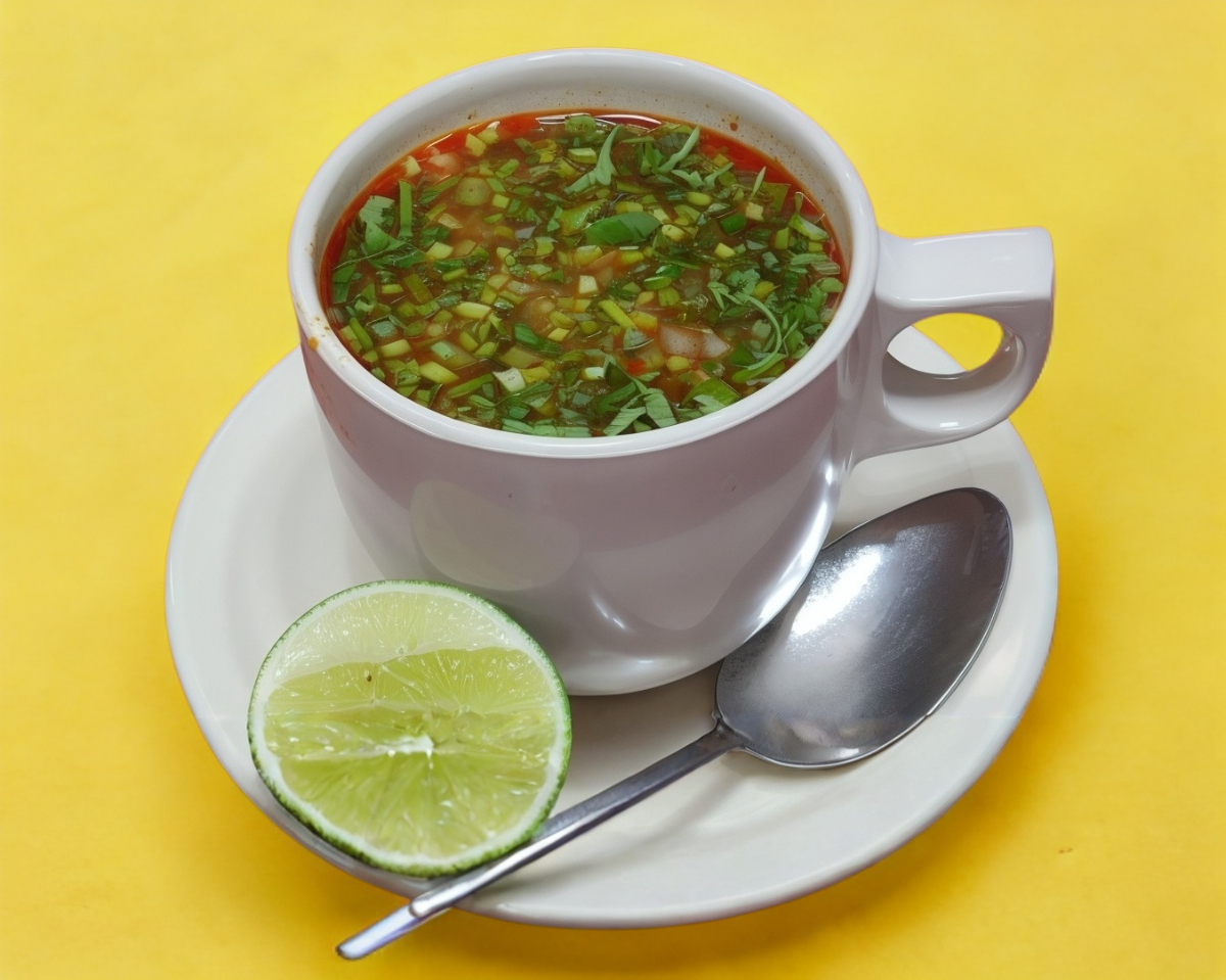 Un litro de consomé con carne incluye verdura, salsa y limones.