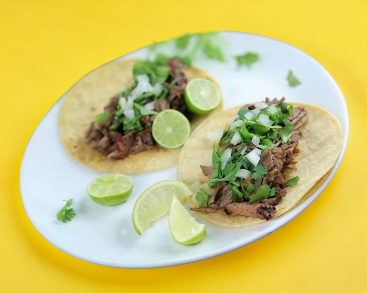 Tortilla de maíz y carne y un consome de cortesía de 8 oz, incluye verdura y salsa. 4pz (platillo personal)
