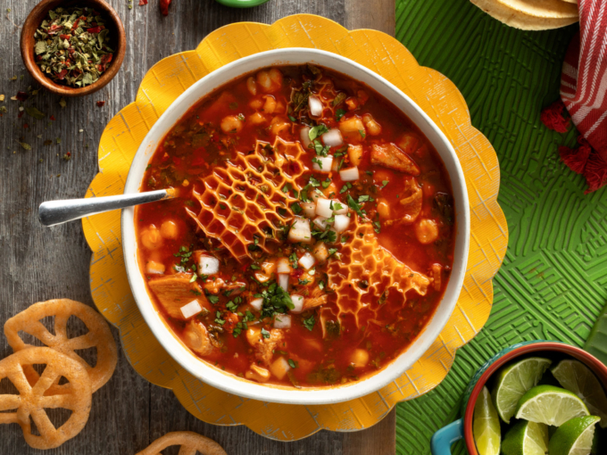 Un litro de consomé, verduras, salsas, limones y un kilo de barbacoa.