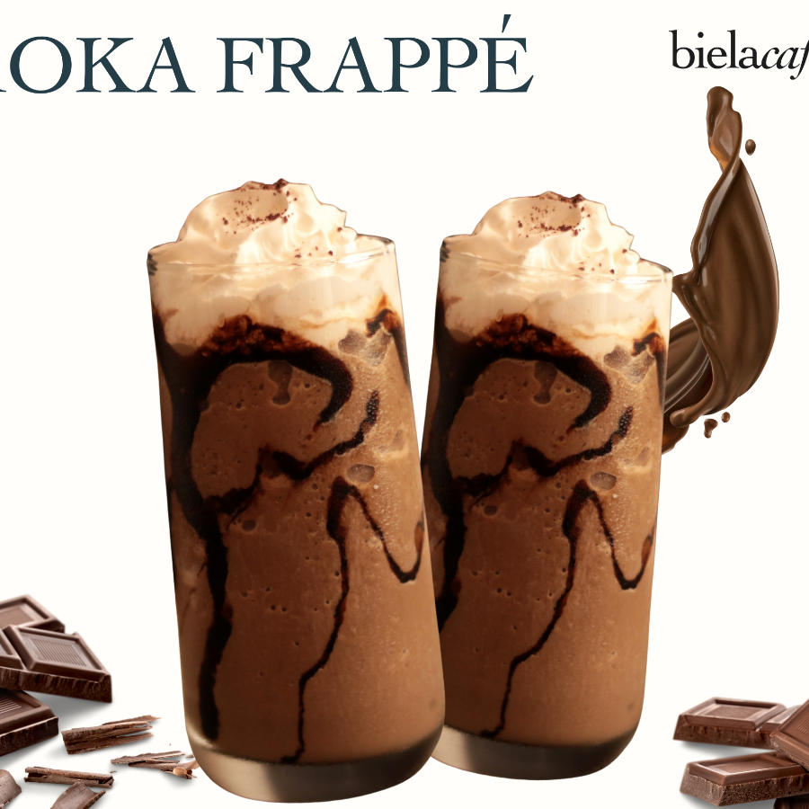 Bebida helada a base de hielo triturado, leche y jarabe de chocolate oscuro, decorada con crema batida. 16oz