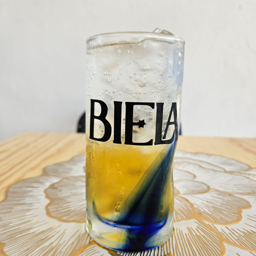 Jugo de arándano con agua mineral (16 oz). De los favoritos de Biela por su acidez frutal.