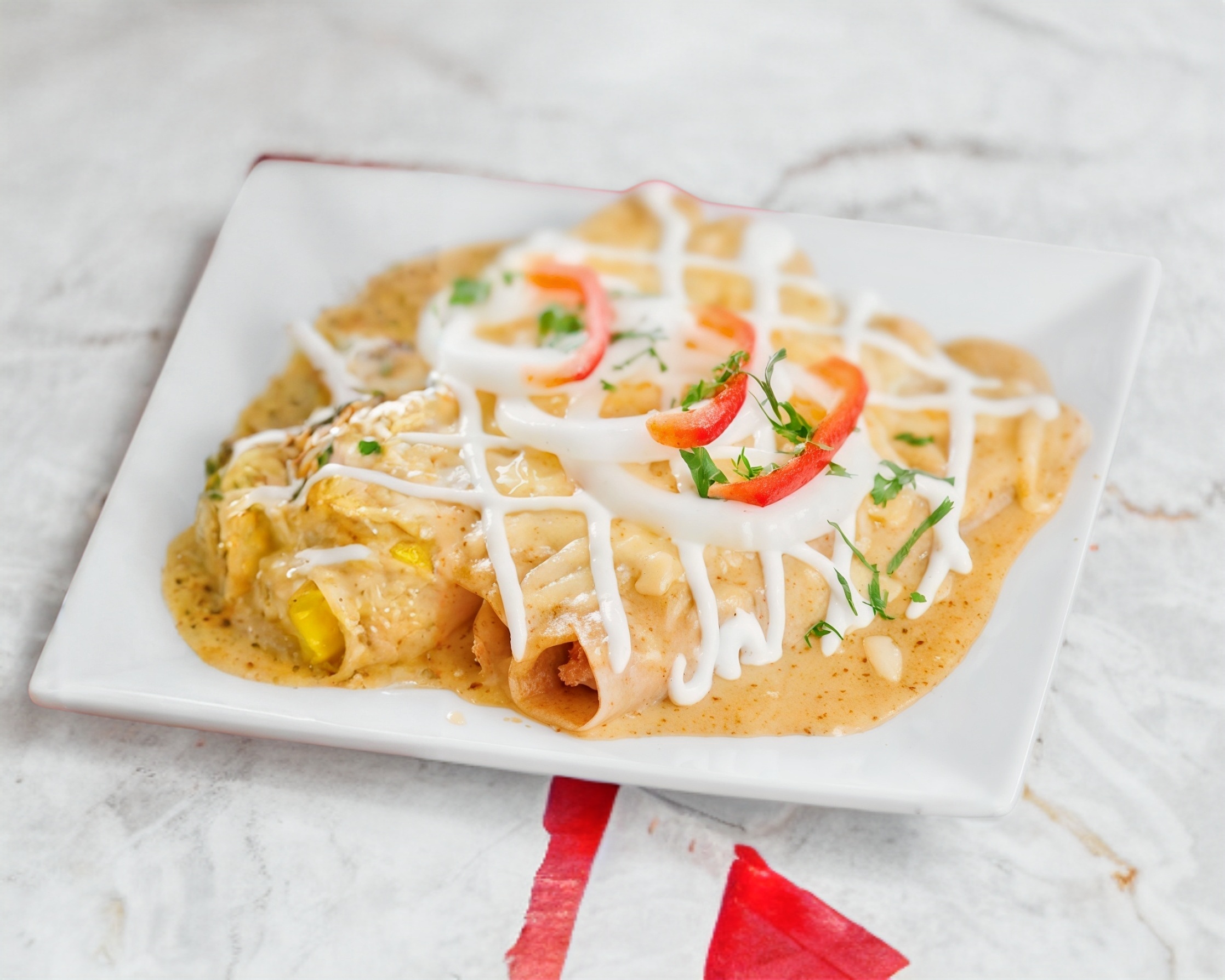pechuga de pavo, queso panela, lechuga, aguacate y aderezo envuelto en tortilla de harina