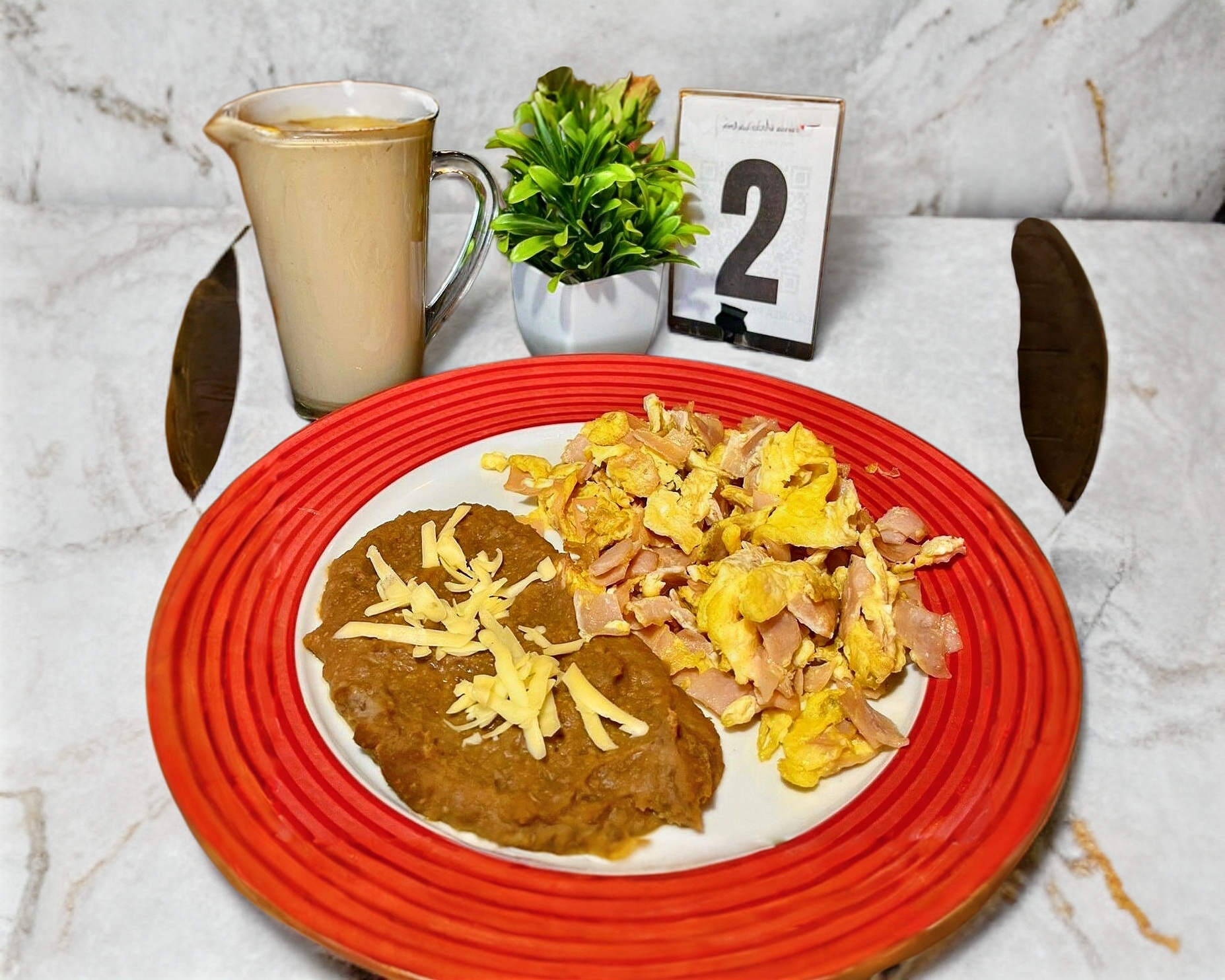 2 Piezas con pan francés, frijoles, queso y salsa. Acompáñalo con un guiso favorito.
