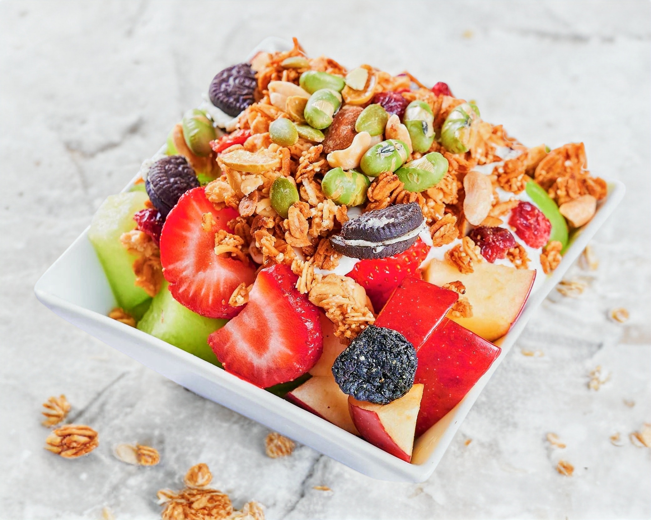 Espinaca, fresa, avena, amaranto, arándano, leche.