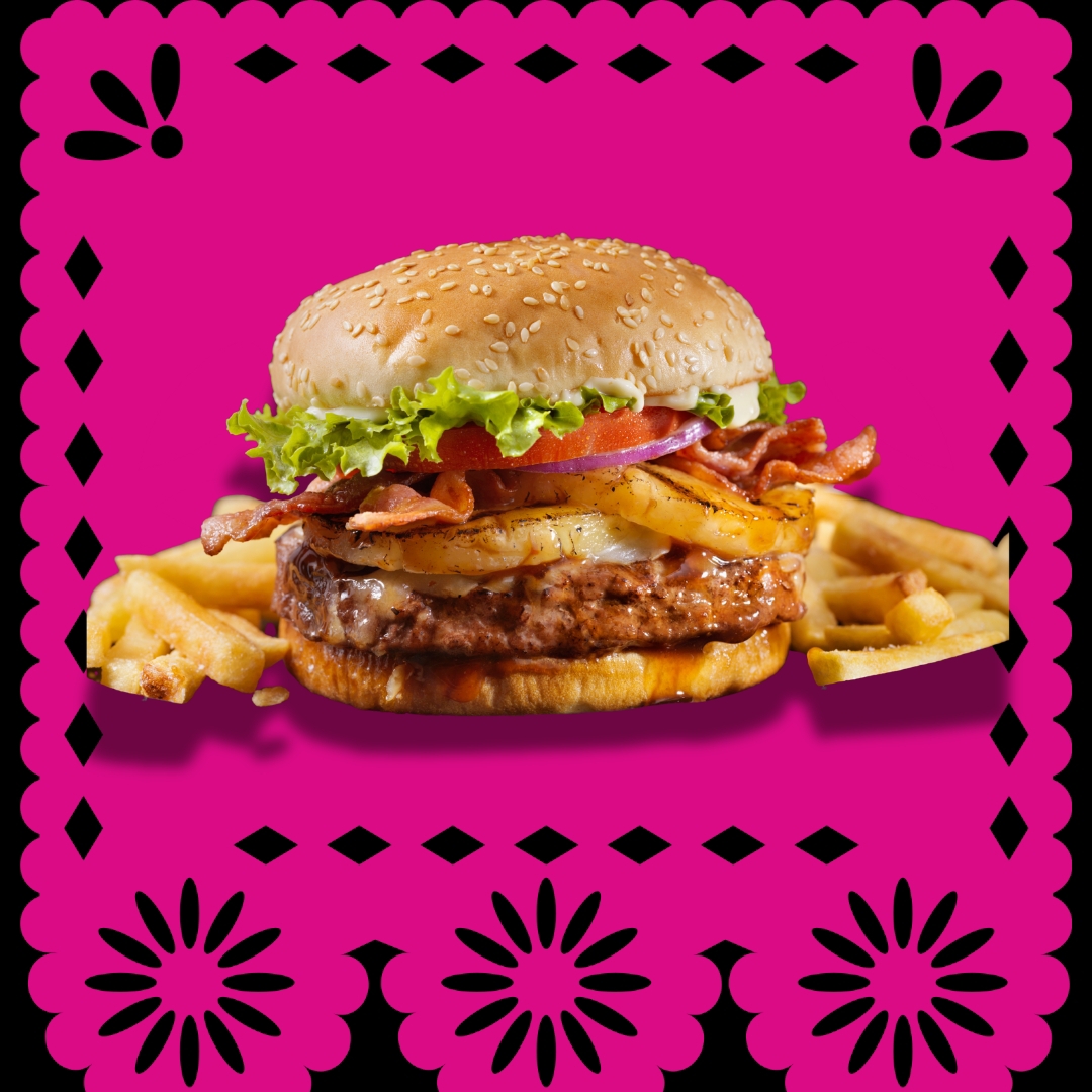 pan, carne, lechuga, tomate, cebolla, aguacate, chiles curtidos, queso americano, jamon, piña, mayonesa, mostaza, catsup.