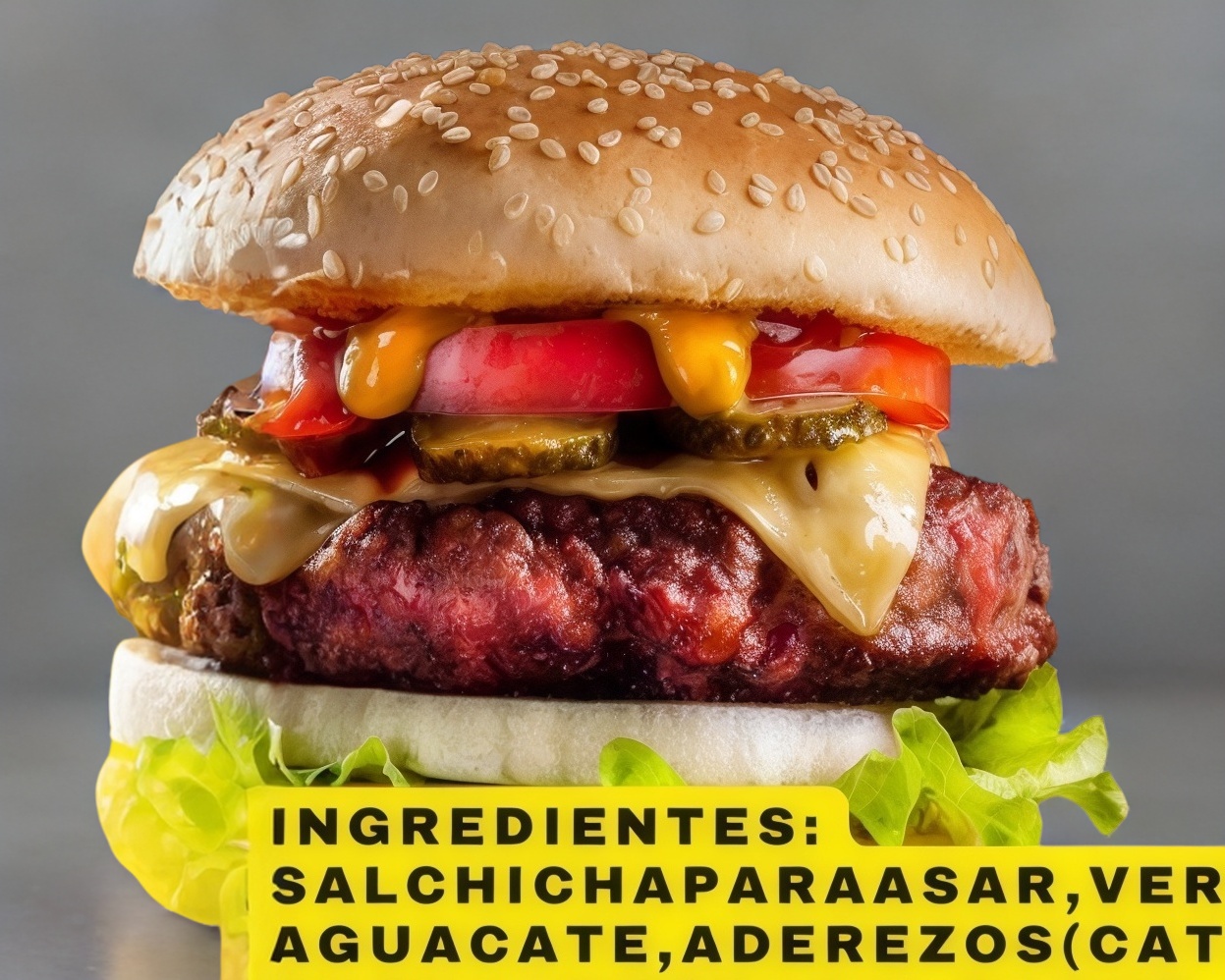 HAMBURGUESA,SALCHICHA PARA AZAR,CEBOLLA AZADA,AGUACATE,TOMATE,CHILE,ADEREZOS,QUESO AMARILLO LIQUIDO