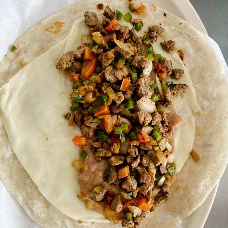 Quesadilla de bistec con frijolitos